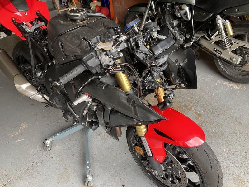 Je suis en train de lui monter une face avant un peu abîmées pour mettre de coté celle en place qui est nikel. Comme ça j'ai un jeu de carénage complet en parfait état au grenier ! Au cas ou...