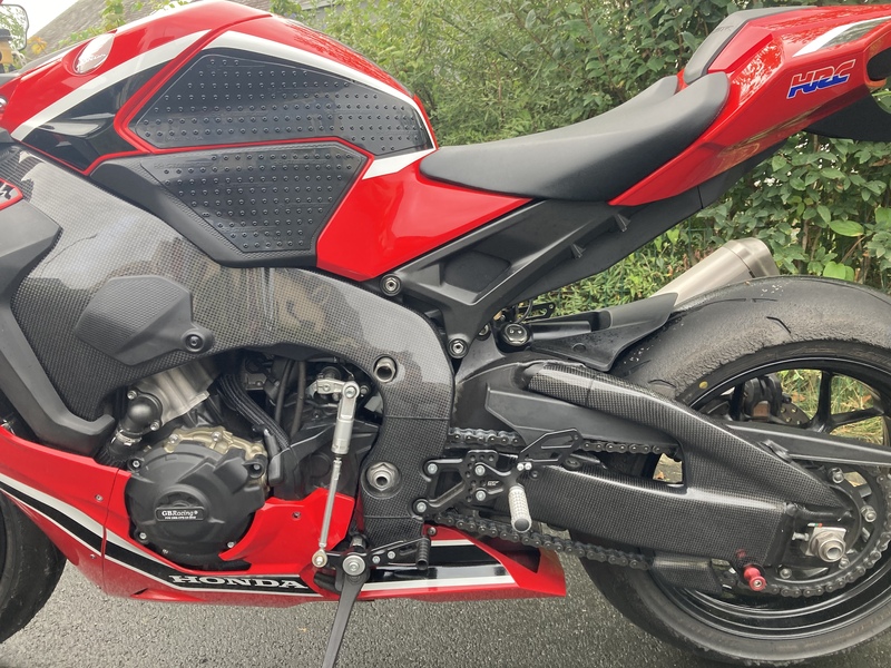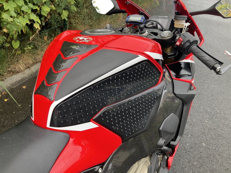 Pose d’une bulle plus haute, des protections carbone, des pad antidérapants, de la face avant et un peu de covering pour protéger le réservoir de la cartouche airbag qui fait des traces !